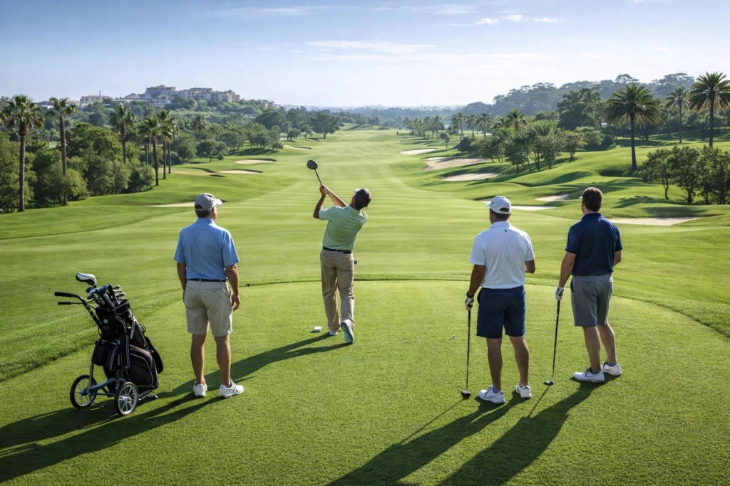 With tee order set, scoring agreed upon, and rotation understood, the group can begin play immediately.